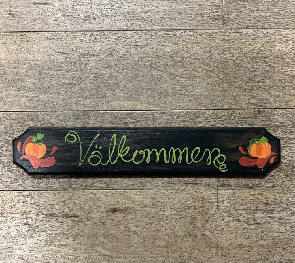 Fina handmålade välkommenskyltar med kurbitsmålning